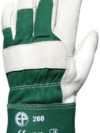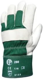 Nagy igénybevételre tervezett, komfortos védőkesztyű, amely puha színmarhabőrből készült. Pamutból van a tenyérbélés, illetve nedves körülményeknek is ellenálló a bőr tenyér. Erős zöld vászon kézhát és mandzsetta egészíti ki pluszba. A kesztyű artéria-, köröm- és ökölcsontvédő, hogy biztonságban tudhassa a használóját.