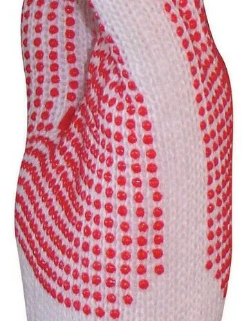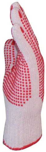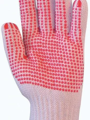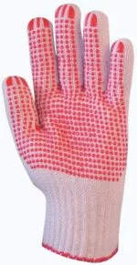 Nőknek szánt pettyezett kötött cérnakesztyű. Négy szálas poliészter/pamut cérnából készült. Mindkét oldalon csúszás elleni pöttyök találhatóak, a könnyebb munkavégzés érdekében. A kesztyűt mindkét oldalán lehet használni, ezáltal is válik különlegessé. Gumírozott mandzsettával, ráadásul hosszabb élettartammal is rendelkezik.