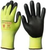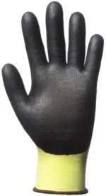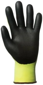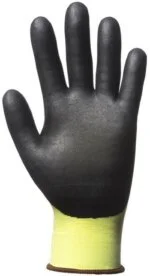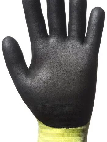 Legmagasabb szakítás- és kopásállóságú, 18-as kötésű és 3-as szinten vágásbiztos fluo sárga HPPE + nylon védőkesztyű. A tenyerén fekete szellőző található, ráadásul mikrohabosított nitril mártott, megnövelt élettartammal. Úgynevezett „második bőr” érzetű tapintási jellemző, teljesen kézre simuló formai kialakítással, illetve páratlan kényelemmel. A kesztyű kiemelkedő csúszásbiztossággal és tapadással rendelkezik még olajos környezetben is. Szellőző tenyér és kézhát, illetve gumírozott mandzsetta egészíti ki.