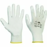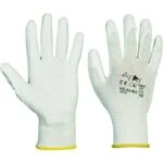 Kötött nylon kesztyű ujjbegyen PU mártással, rugalmas mandzsettával.