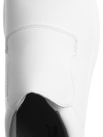 Ez egy kiváló bebújós cipő, szivacsos szártetővel. Fehér, antisztatikus védőlábbeli, amely vízlepergető és szellőző mikroszálas felsőrésszel, illetve kompozit lábujjvédővel rendelkezik. A talpa hajlékony és kétrétegű. A cipő nedves kerámia és acél felületre bevizsgált, ebből adódóan pedig emelt szintű SRC csúszásbiztosságú. Nagy kopásállóságú, növényi olajoknak, állati zsíroknak, szénhidrátvegyületeknek és lúgoknak ellenálló a fehér talpa. Szivacsos lábfeje és elasztikus komfortbetéte van. Kék, nedvességszívó, kopásálló, hálós szerkezetű, antibakteriális, szellőző puha bélés és kényelmes talpbetét egészíti ki a cipőt.