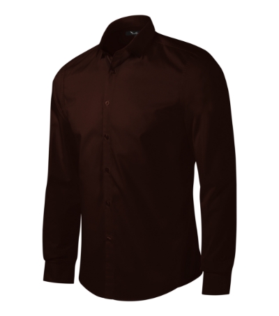 enyhén szűkített szabás, oldalvarrással, hátrész dupla letűzéssel és szűkítővarrásal, dupla ing gallér, erősítét gallér sarokkal, elülső rész gombolópánttal végződik, hosszú ujjú szögletes mandzsettával és 2 gombbal, gyöngyház gombok a szövet színében (plusz 1 tartalék gombbal), ívelt alsó szél