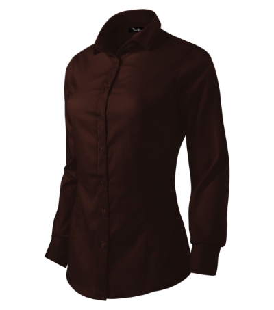 enyhén szűkített szabás, oldalvarrással, hátsó rész kettős hajtással, mellrész és derék szűkítővarrásal, dupla ing gallér, elülső rész gombolópánttal végződik, hosszú ujjú szögletes mandzsettával és 2 gombbal, gyöngyház gombok a szövet színében (plusz 1 tartalék gombbal), ívelt alsó szél