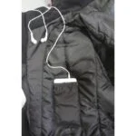 Kabát. Vízálló varrás. Hideg elleni cipzárral záródó. Alul elasztikus zsinórral állítható. Levehető vatelines kapucni. 6 zseb.