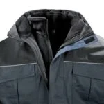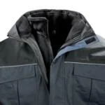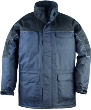Különleges, 4 az 1-ben modell: szakadásbiztos, Ripstop rácsos szerkezetű, PVC-vel vízhatlanított poliészter külső télikabát. A mellényen levehető polár ujjak vannak, ha mindet összecipzározunk, akkor bélelt télikabáttá alakul. Ez egy 280 g/m2 kivehető, zsebes polár mellény. Alul poliamid vesevédő része van, a kapucnija gallérba rejtett. Van több zsebe is a kabátnak: hét külső, egy belső zseb. Végig cipzáros, plusz tépőzáras vízvető hajtóka. Állítható csukló-, alj- és derkékbőséggel rendelkezik. A színe sötétkék/fekete, körbefutó fényvisszaverő díszcsíkkal van ellátva.