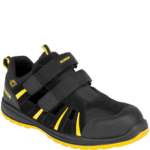 Biztonsági, fém elemektől mentes szandál, hasított bőrből és MESH textíliából.